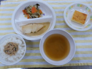 後期:鶏肉ともやしの煮物/胡瓜と人参のサラダ/じゃがいも/軟飯