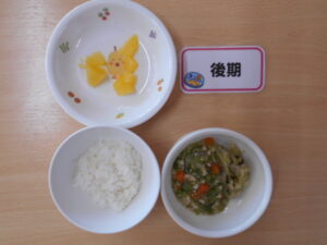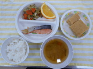 1月20日(火)の献立 投稿日時: 2026年1月20日 投稿者: tenryu-lunch 1月20日(火)の献立 ・麦ごはん ・魚の塩焼き ・白菜としめじの味噌汁 ・キャベツのごま和え ・オレンジ ~おやつ~ ・きな粉蒸しパン <離乳食> 後期:鶏肉と豆腐のあんかけ/キャベツともやしのサラダ/オレンジ/軟飯