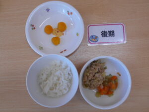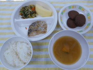 2月4日(水)の献立 投稿日時: 2026年2月4日 投稿者: tenryu-lunch 2月4日(水)の献立 ・ごはん ・魚のごま焼き ・チンゲン菜としめじの味噌汁 ・キャベツの磯香和え ・りんご ~おやつ~ ・ココアクッキー <離乳食> 後期:ツナと玉ねぎの煮物/人参と胡瓜の和え物/かぼちゃ/軟飯